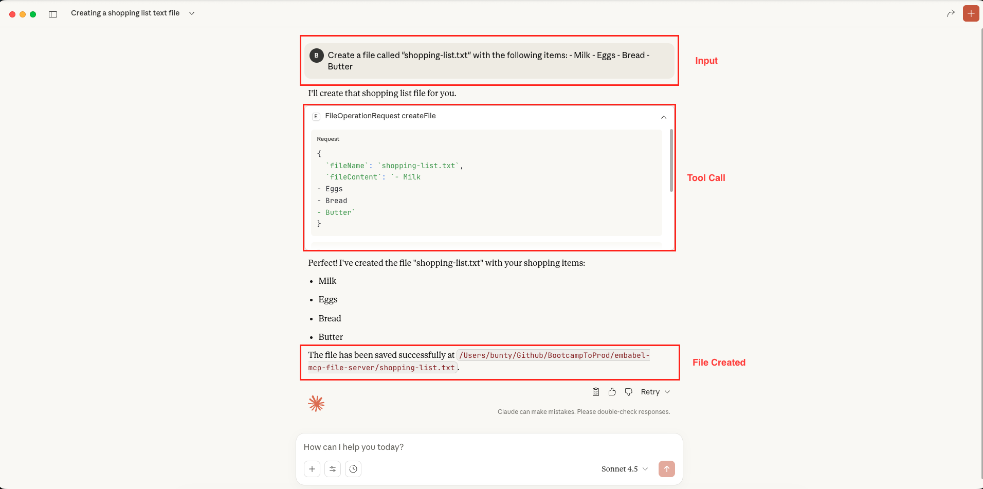 Our server will expose these operations through the MCP protocol, allowing AI assistants like Claude to perform file operations through natural language commands.
